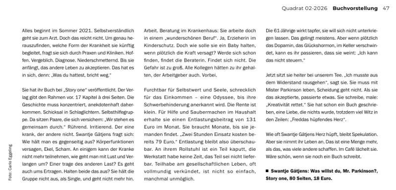 Hier präsentiere ich mein Buch: "Was willst du, Mr. Parkinson...?". Ich möchte einen Einblick in mein Leben mit dieser Erkrankung geben. Mein Ziel ist es, meine Erfahrungen zu teilen. Ich hoffe, andere finden Inspiration und vielleicht sogar Trost in meiner Geschichte.
